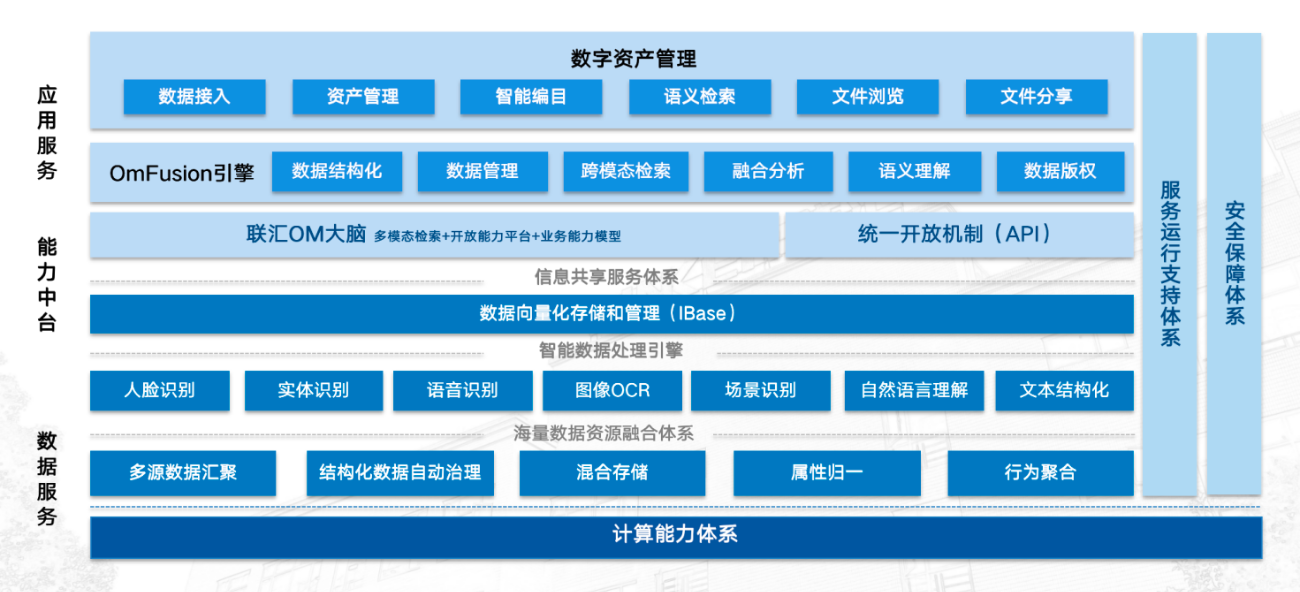 通过向量化知识处理引擎对文本和图像进行向量化处理,形成向量化数字资产知识库,用于支撑资产数据的检索和分析。基于深度学习的向量化算法,不但能够完整储存音视图文特征,还能将对象与对象之间抽象联系转换成数学相似性进行存储。为后续数据管理、分类、查找、归档提供层级合理、有条不紊的数据体系架构,助力资产数据高效、有序、安全管理。