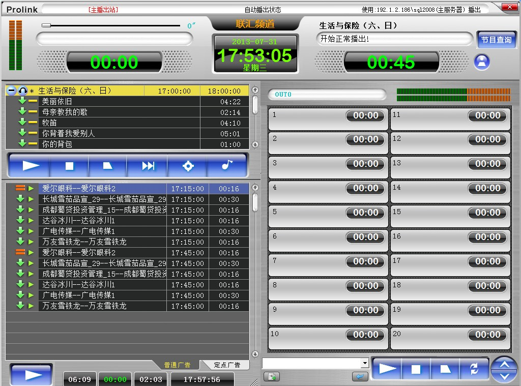 ProLink是联汇公司集多年实际应用经验而开发的新一代自动播出体系,首创多库多指向功能,当发生服务器容机等灾难事故时,播出站将自动指向备用服务器或本地库,保证播出安全;
