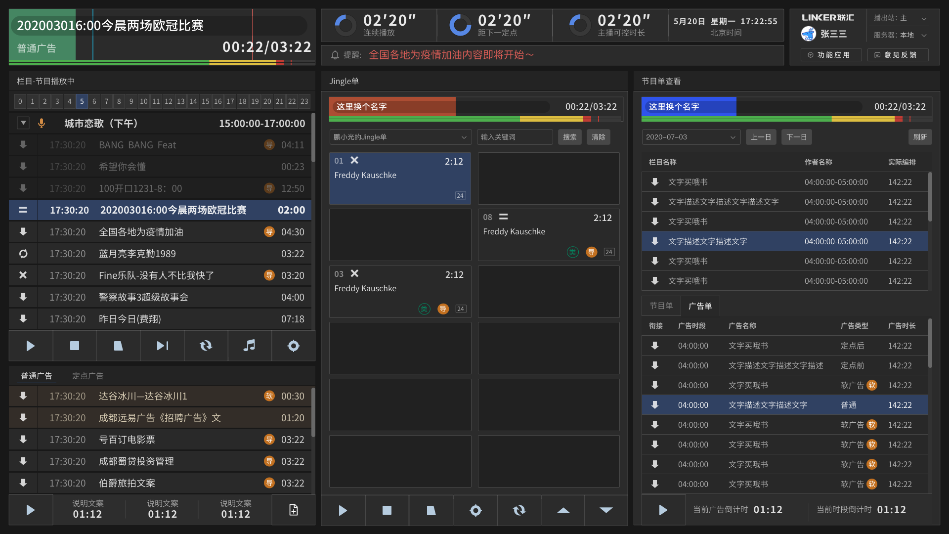 充分满足频率主播个性化播出风格,在保证播出安全的同时方便主播快速调用个性化配置;